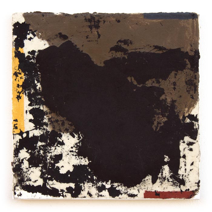 calco in resina e caucciù acrilici di cementi, pigmenti e polveri su tela, cm. 37 x 37.