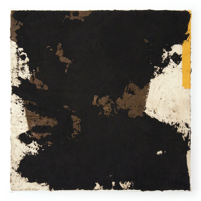 calco in resina e caucciù acrilici di cementi, pigmenti e polveri su tela, cm. 40 x 40.