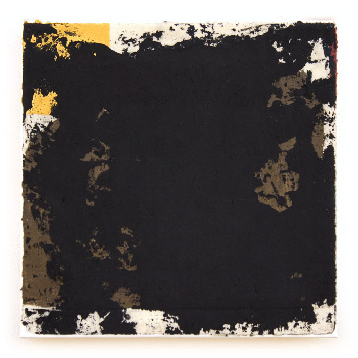calco in resina e caucciù acrilici di cementi, pigmenti e polveri su tela, cm. 37 x 37.